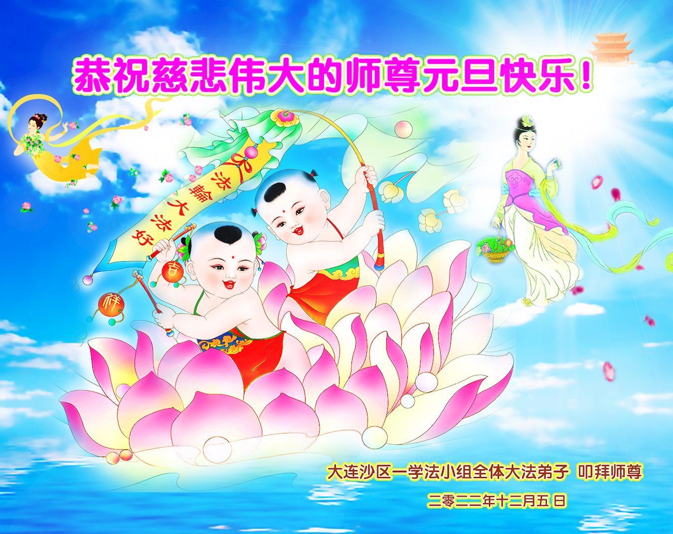【明慧网二零二二年十二月二十九日】 辽宁省大连建筑设计院大法弟子敬上敬上恭祝师尊新年快乐!