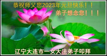新年伊始,感恩师尊慈悲救度。二十多年修炼路,师尊一路保护,弟子用心感恩,唯有精進实修,做好三件事,已报师恩。 叩谢师尊! 辽宁省大连市沙区一大法弟子敬上敬上 二零二二年十二月二十三日 辽宁省大连大法弟子敬上恭贺最伟大师父新年快乐!
