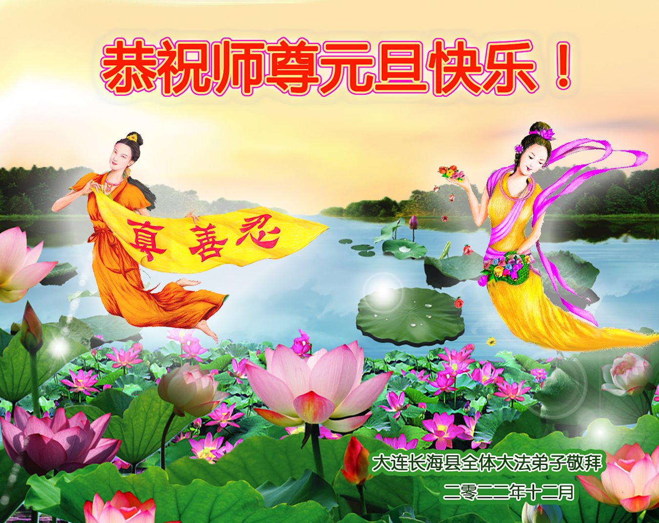 大连长海县全体大法弟子敬上敬上 二零二二年十二月 辽宁省大连沙区一学法小组敬上大法弟子敬上恭祝慈悲伟大的师尊元旦快乐!