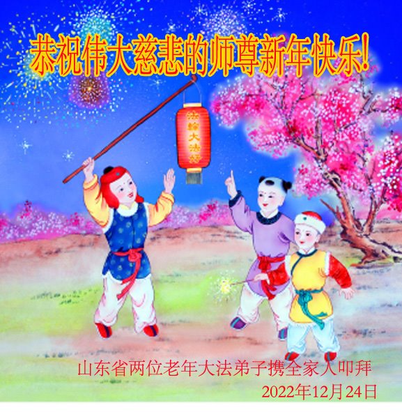 【明慧网二零二二年十二月二十九日】 山东省烟台市招远市大法弟子恭祝师父新年快乐!