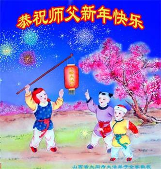 恭祝师父新年快乐! 山西省大同市大法弟子全家人敬祝 山西省大同市大法弟子全家人恭祝师父新年快乐!