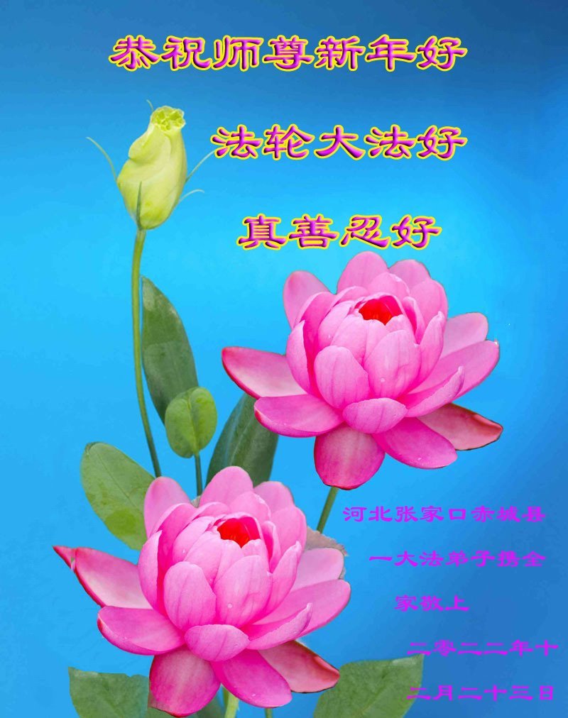 【明慧网二零二二年十二月二十九日】 河北省张家口市赤城县城一学法小组大法弟子恭祝师尊新年快乐!