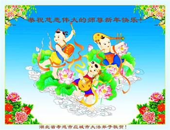 【明慧网二零二二年十二月二十九日】 湖北省孝感市应城市大法弟子恭祝慈悲伟大的师尊新年快乐!