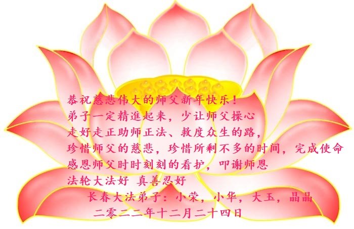 【明慧网二零二二年十二月二十九日】 吉林长春市大法弟子恭祝师尊新年快乐!