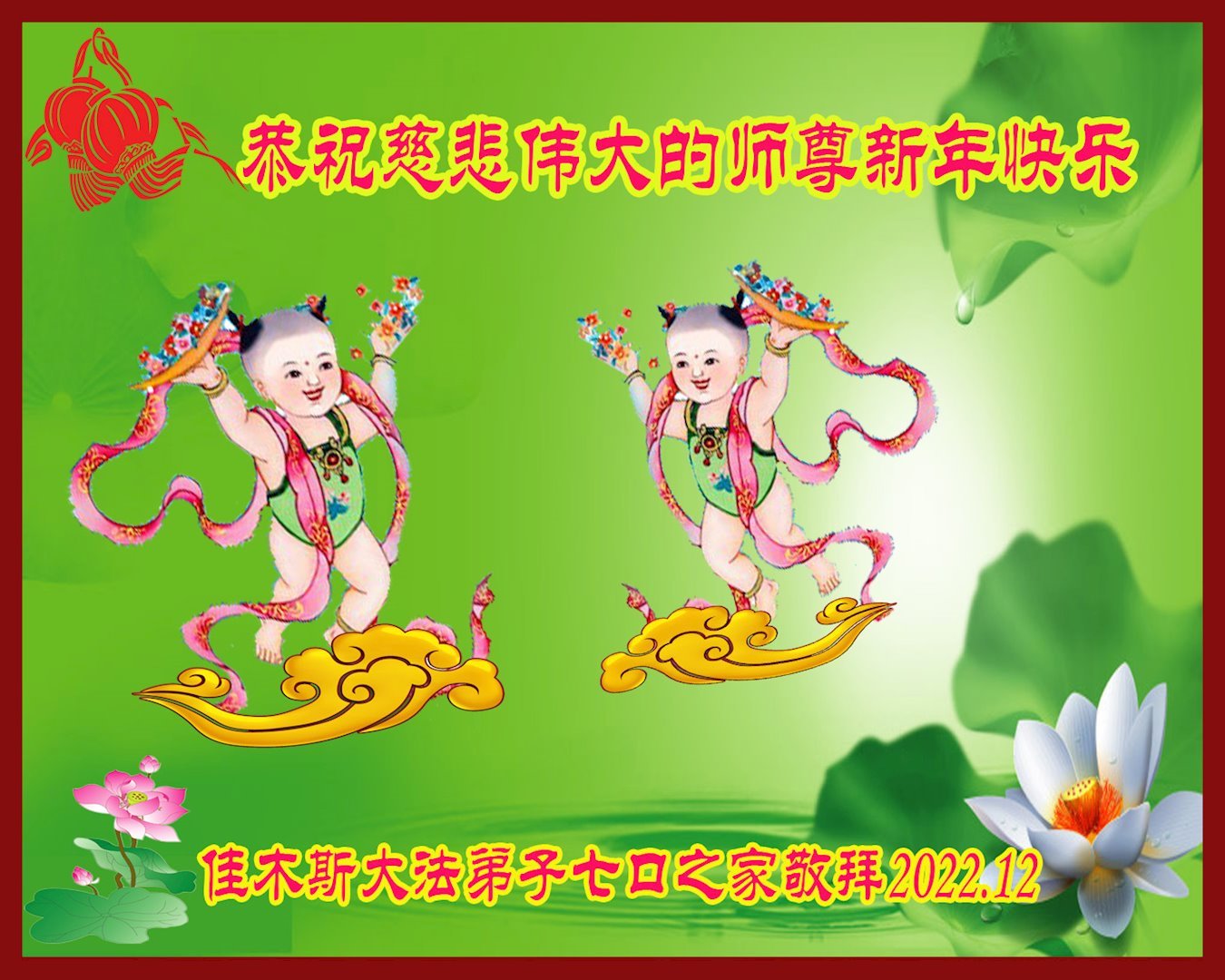 黑龙江省佳木斯大法弟子七口之家恭祝慈悲伟大的师尊新年快乐!