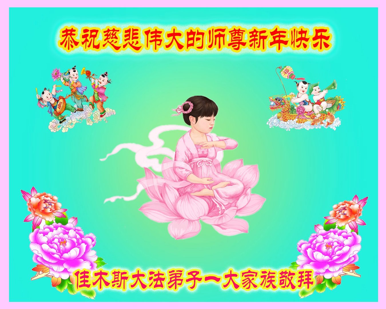 黑龙江省佳木斯一大法弟子及家族恭祝慈悲伟大的师尊新年快乐!