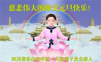四川省乐山市中区一大法弟子及全家人恭祝慈悲伟大的师父元旦快乐!
