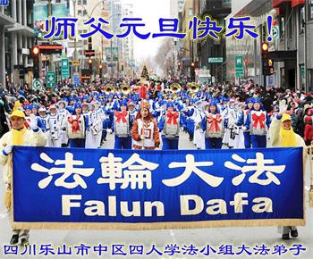 四川省乐山市中区四人学法小组大法弟子恭祝慈悲伟大的师父元旦快乐!