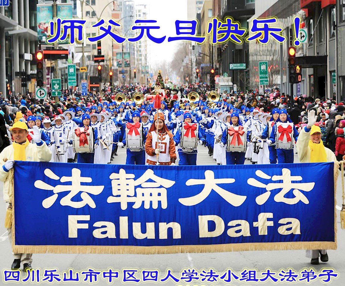 四川省乐山市中区全体大法弟子恭祝慈悲伟大的师父元旦快乐!
