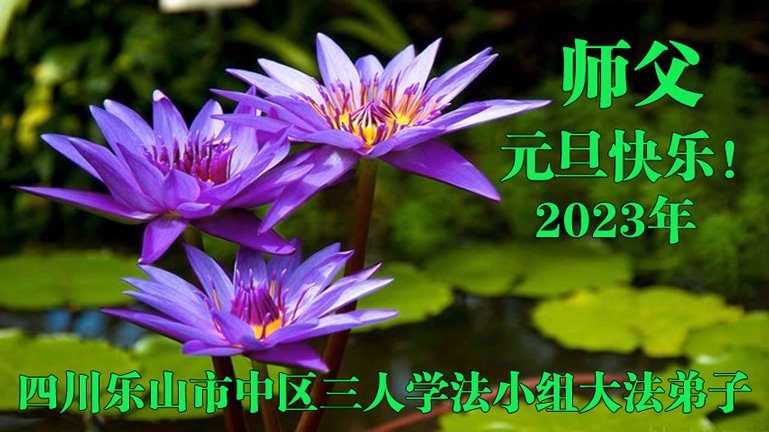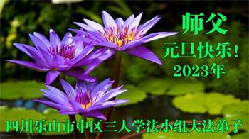 四川省乐山市中区三人学法小组大法弟子恭祝慈悲伟大的师父元旦快乐!