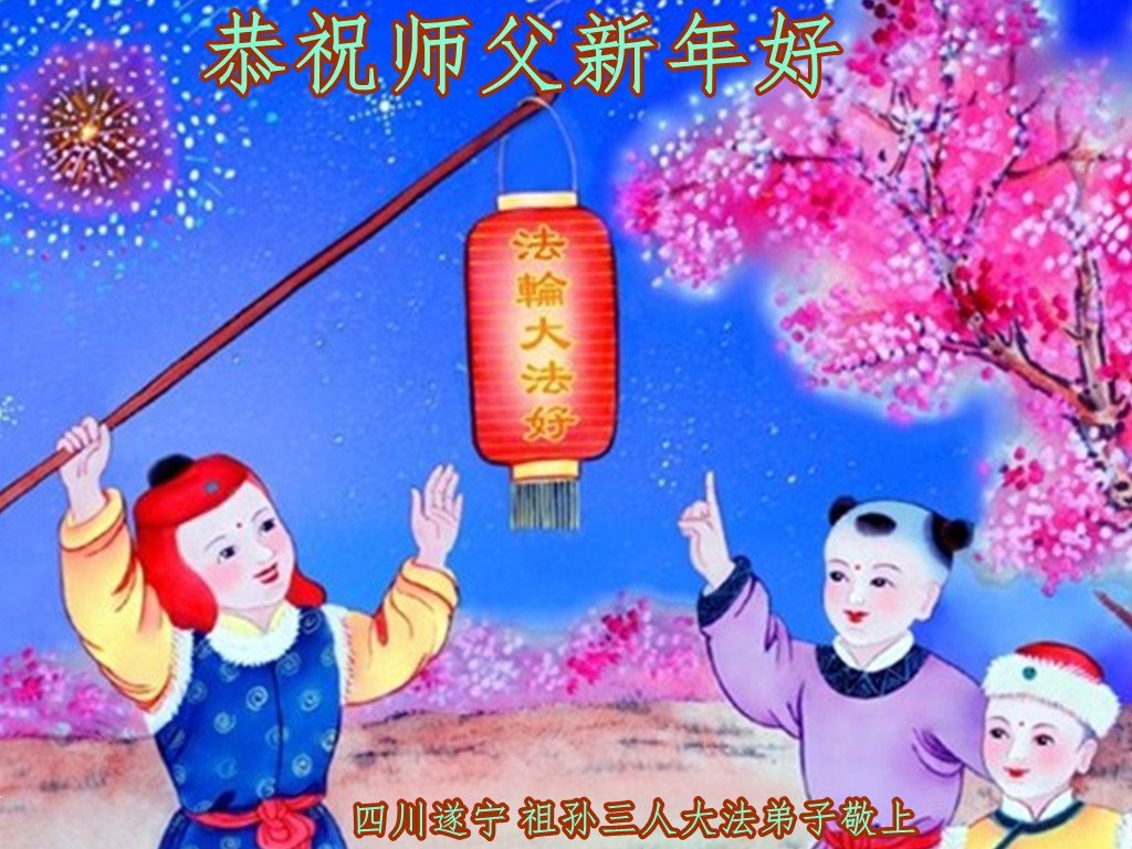 四川遂宁市祖孙三人大法弟子恭祝师父新年好!