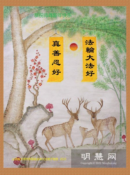 【明慧网二零二二年十二月二十九日】 山西省太原市清徐县全体大法弟子敬上恭祝慈悲伟大的师尊新年快乐!