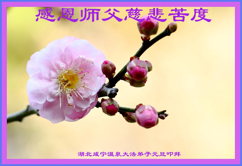 寅虎逝去玉兔生 万象更新纪元新 千难万险无所畏 满载众生报师恩 弟子叩谢恩师 湖北省广水市一学法小组大法弟子合十敬贺 湖北省咸宁市咸安区大法弟子恭祝慈悲伟大的师父新年快乐!