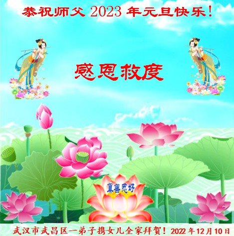 武汉母女俩大法弟子敬上 二零二二年十二月二十一日 湖北省武汉市大法弟子恭祝师父元旦快乐!
