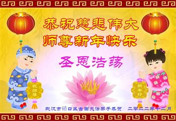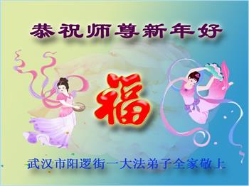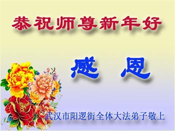 湖北省武汉市阳逻街全体大法弟子恭祝慈悲伟大的师尊新年快乐! 湖北省武汉市阳逻街一位大法弟子全家恭祝慈悲伟大的师尊新年快乐!