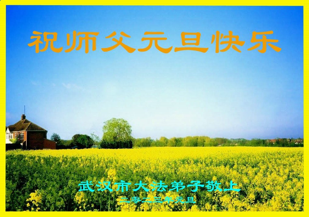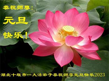 湖北省武汉市阳逻街一位大法弟子恭祝慈悲伟大的师尊新年快乐! 湖北省天门市全体大法弟子恭祝师父2023年元旦快乐!