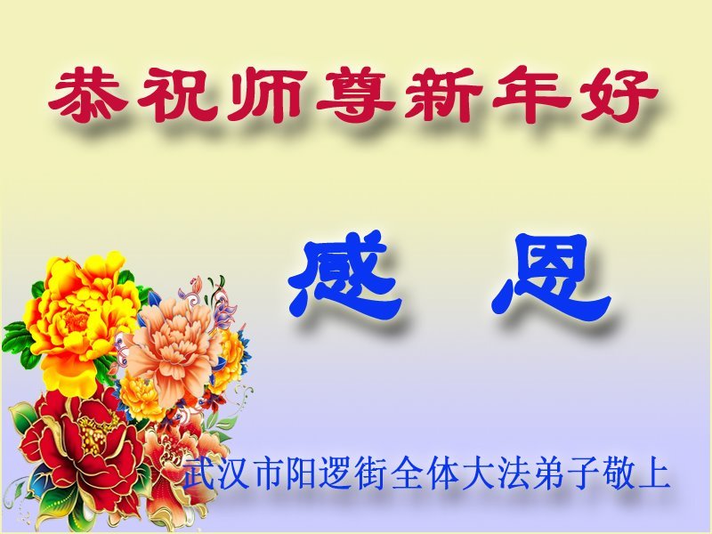 武汉市大法弟子 湖北省武汉市新洲区全体大法弟子恭祝慈悲伟大的师尊新年快乐!