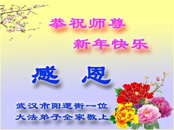 湖北省武汉市阳逻街一位大法弟子全家恭祝慈悲伟大的师尊新年快乐! 湖北省武汉市阳逻街一位大法弟子全家恭祝慈悲伟大的师尊新年快乐!
