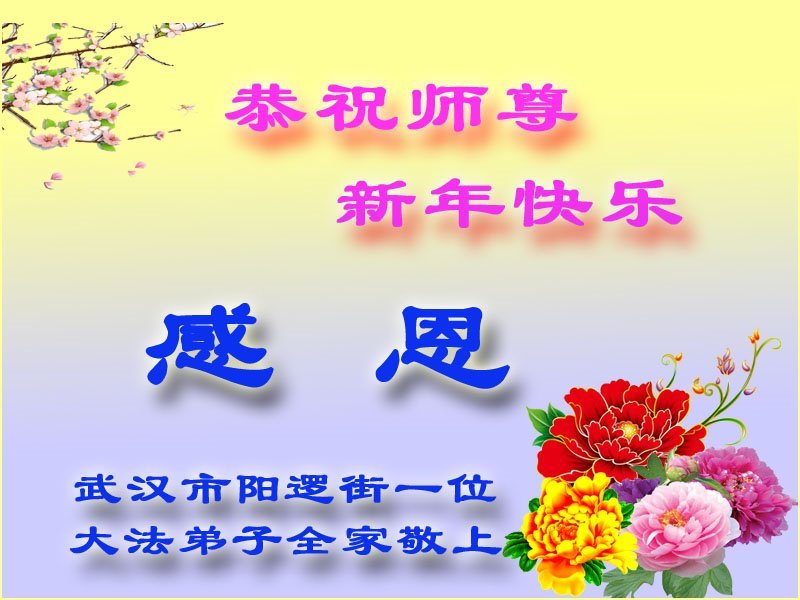 湖北省武汉市阳逻街一位大法弟子全家恭祝慈悲伟大的师尊新年快乐! 湖北省武汉市阳逻街一位大法弟子恭祝慈悲伟大的师尊新年快乐!