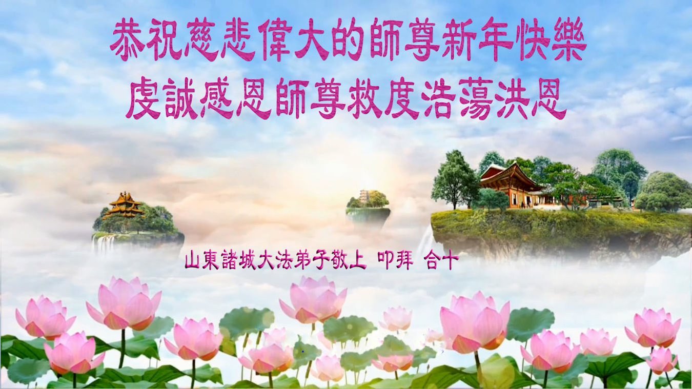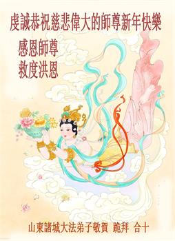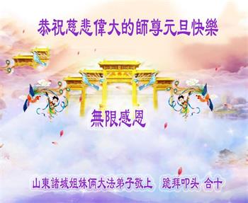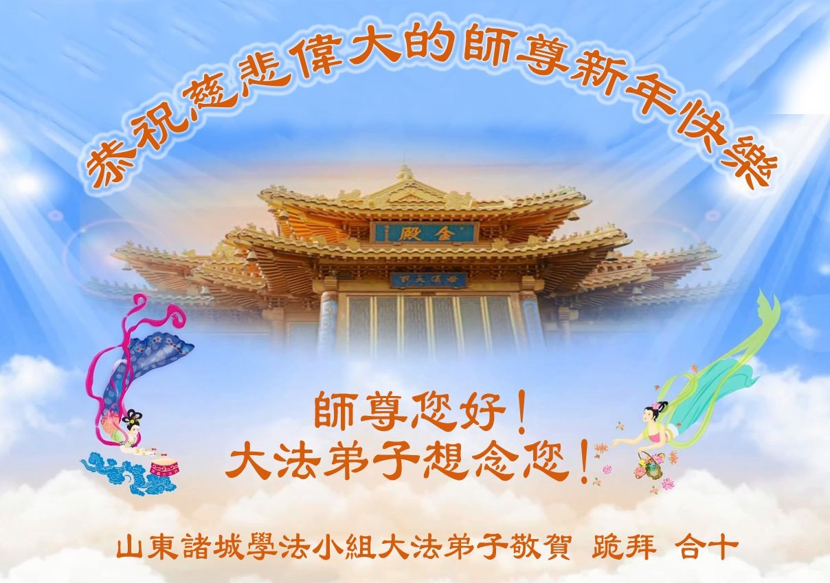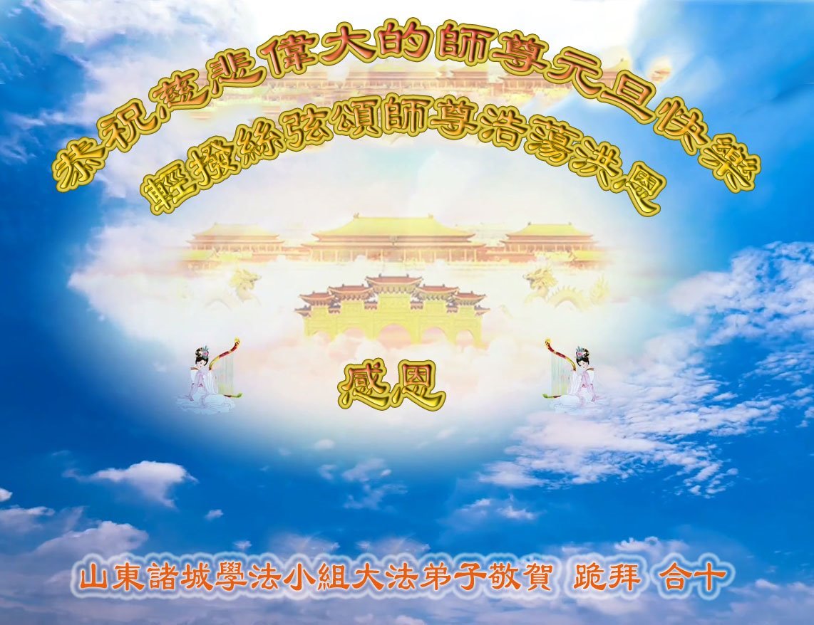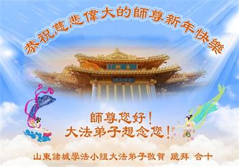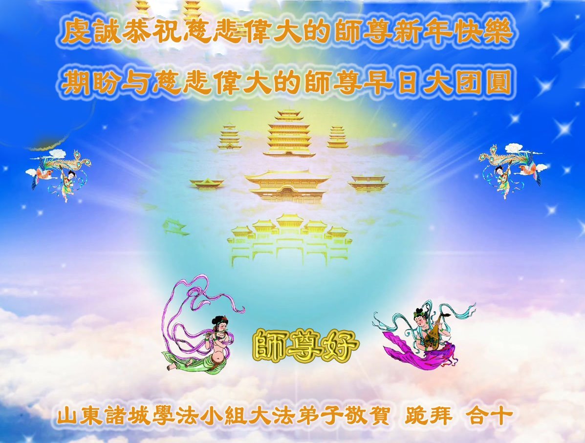 山东省诸城市一学法小组三人敬上 山东省潍坊市诸城市十二名大法弟子恭祝慈悲伟大的师尊新年快乐!