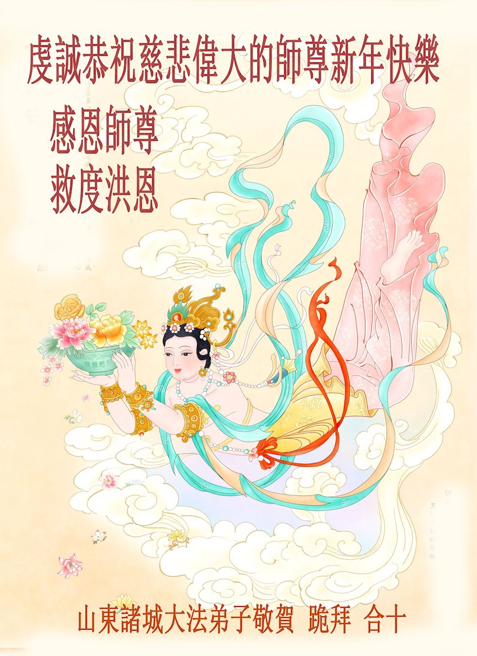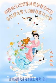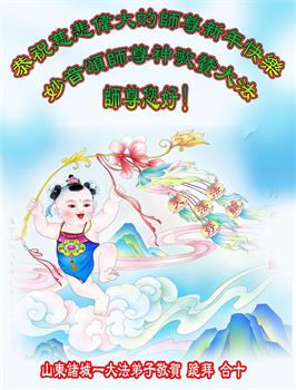 山东省潍坊市诸城市母子俩大法弟子敬上 山东省潍坊市诸城市学法小组大法弟子恭祝慈悲伟大的师尊新年快乐!