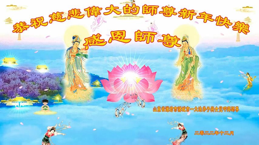 弟子感恩师尊无时不在的加持和保护,弟子深刻体会到师尊就在弟子身边。弟子一定要快转变人的观念,快去执着心,做好三件事,跟上师父的正法進程。 跪拜师尊! 二零二二年十二月 山东省潍坊市诸城市一大法弟子恭祝慈悲伟大的师尊新年快乐!