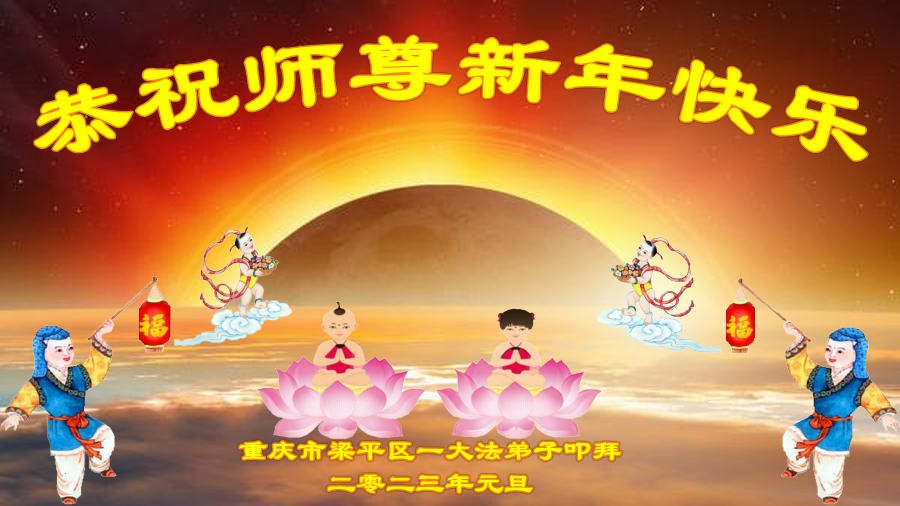 【明慧网二零二二年十二月二十九日】 重庆市江北区一学法小组全体大法弟子恭祝师尊新年快乐!