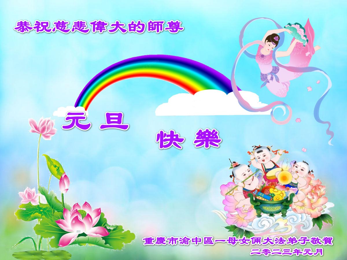重庆市渝中区一母女俩大法弟子恭祝师尊元旦快乐!