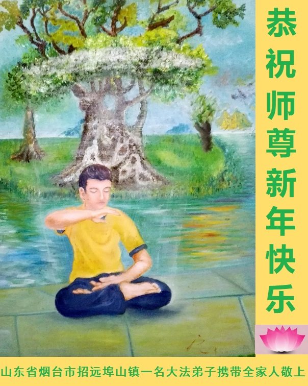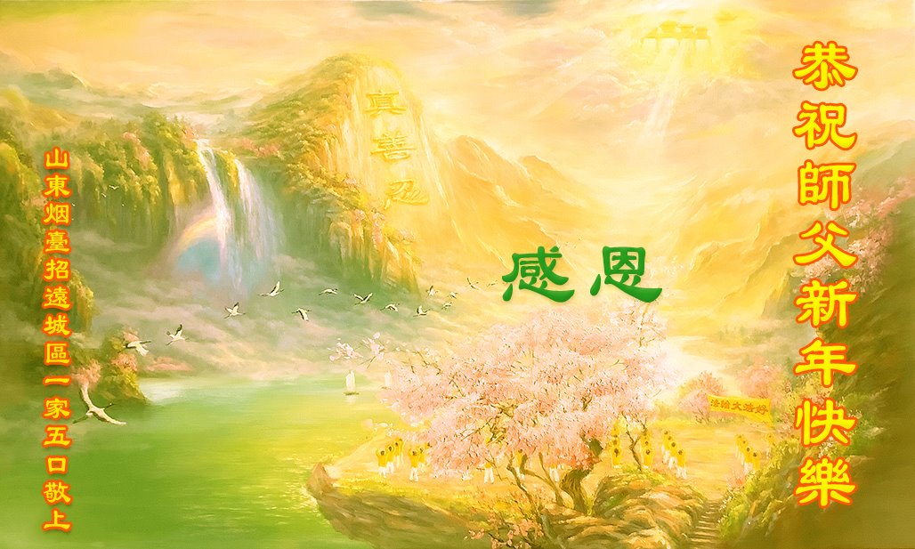 恭祝慈悲伟大的师尊新年快乐! 感恩慈悲伟大的师尊救度之恩! 山东省烟台市招远埠山镇一名大法弟子携带全家人敬上 山东省烟台市栖霞城区一大法弟子恭祝慈悲伟大的师尊新年快乐!