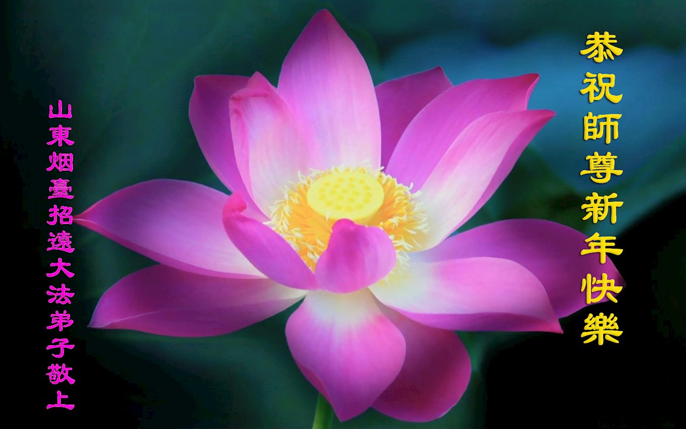 恭祝慈悲伟大的师尊新年快乐! 谢谢师尊慈悲救度! 山东省烟台市栖霞城区一大法弟子敬上 山东省烟台市栖霞城区一学法小组大法弟子恭祝慈悲伟大的师尊新年快乐!