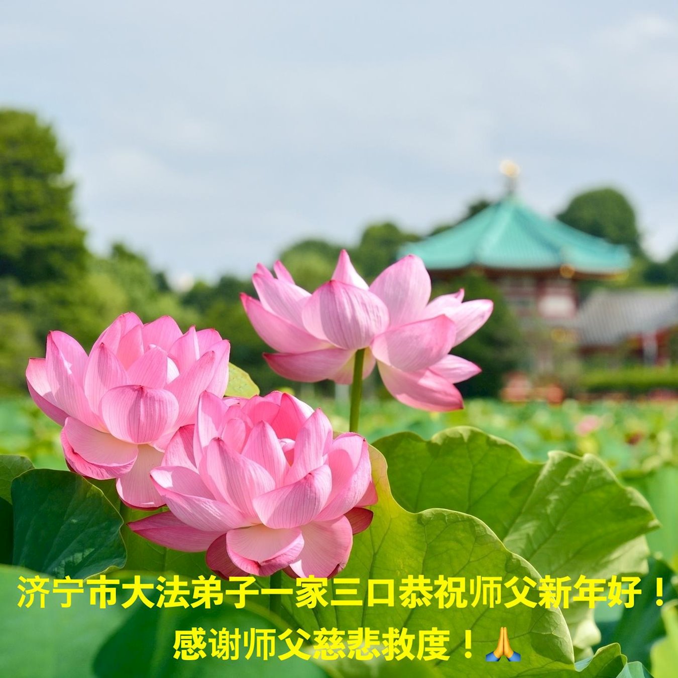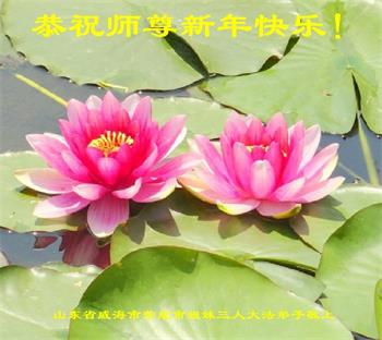 敬祝伟大的师尊新年快乐! 师尊,在这正法结束的尾声之时,也是弟子身心净化的关键时刻,在消业的魔难中,师尊每时每刻点悟着我,鼓励着我,让我度过了修炼以来从未有过的大关,使我从各方面深挖自己的人心执着,悟到了好多未悟到的法理,是师尊把我从病业的难中解脱出来了,归正了我修炼的路。我千言万语也诉说不出对师尊的感恩之情,唯有精進,再精進,多救人,不辜负师尊的苦度和对弟子的殷切期望。 叩拜师尊!再次祝愿慈悲伟大的师尊新年快乐!永远快乐! 山东省威海市荣成市宁津镇姐妹三位法弟子恭祝师尊新年快乐!