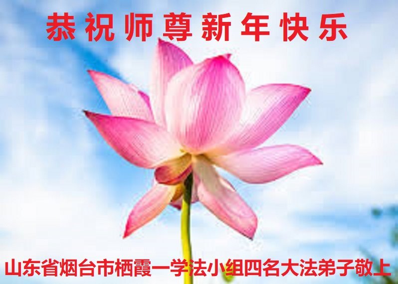 恭祝慈悲伟大的师尊新年快乐! 山东省烟台市栖霞市一学法小组四名大法弟子敬上 山东省烟台市栖霞城区一大法弟子恭祝慈悲伟大的师尊新年快乐!