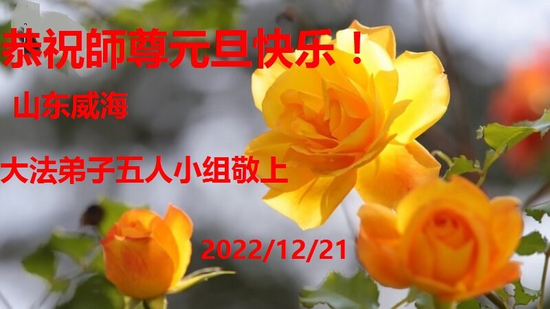 【明慧网二零二二年十二月三十日】 山东省威海市文登区全体大法弟子恭祝师尊新年好!