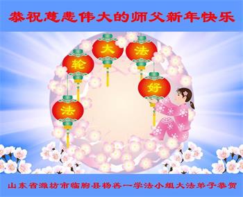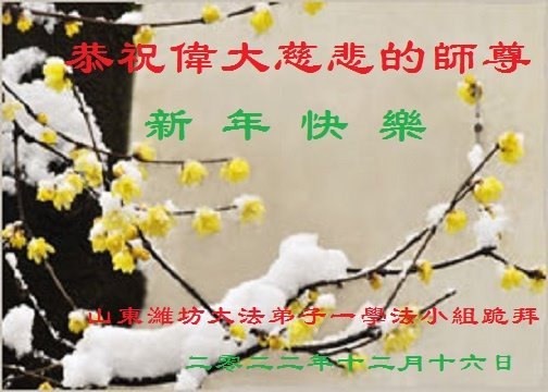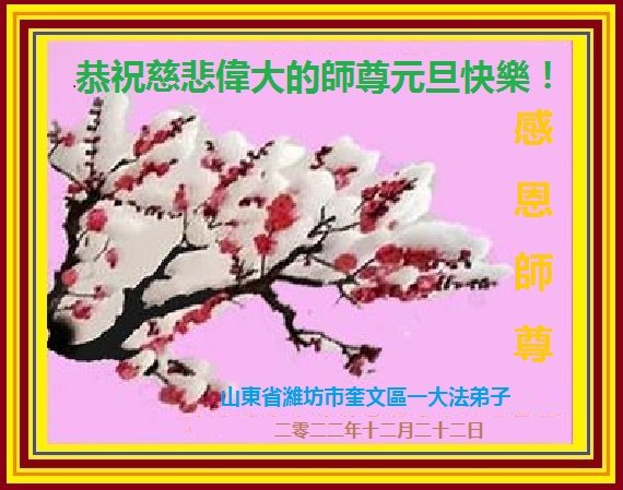 山东省潍坊市临朐县一学法小组大法弟子恭祝慈悲伟大的师父新年快乐! 山东省潍坊市奎文区一大法弟子恭祝慈悲伟大的师尊元旦快乐!
