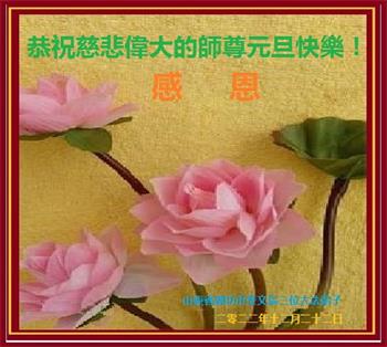 山东省潍坊市诸城市四名大法弟子敬上 山东潍坊大法弟子一学法小组全体大法弟子叩拜恭祝伟大慈悲的师尊新年快乐!