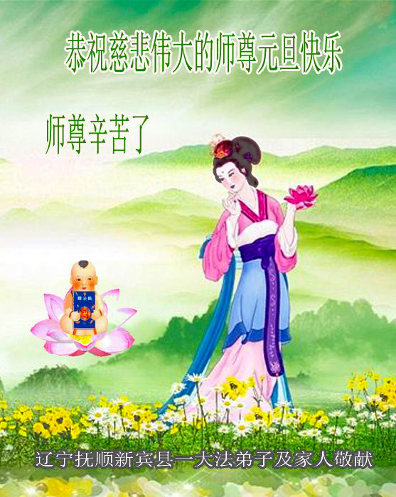 辽宁抚顺新宾县一大法弟子及家人恭祝师尊元旦快乐!