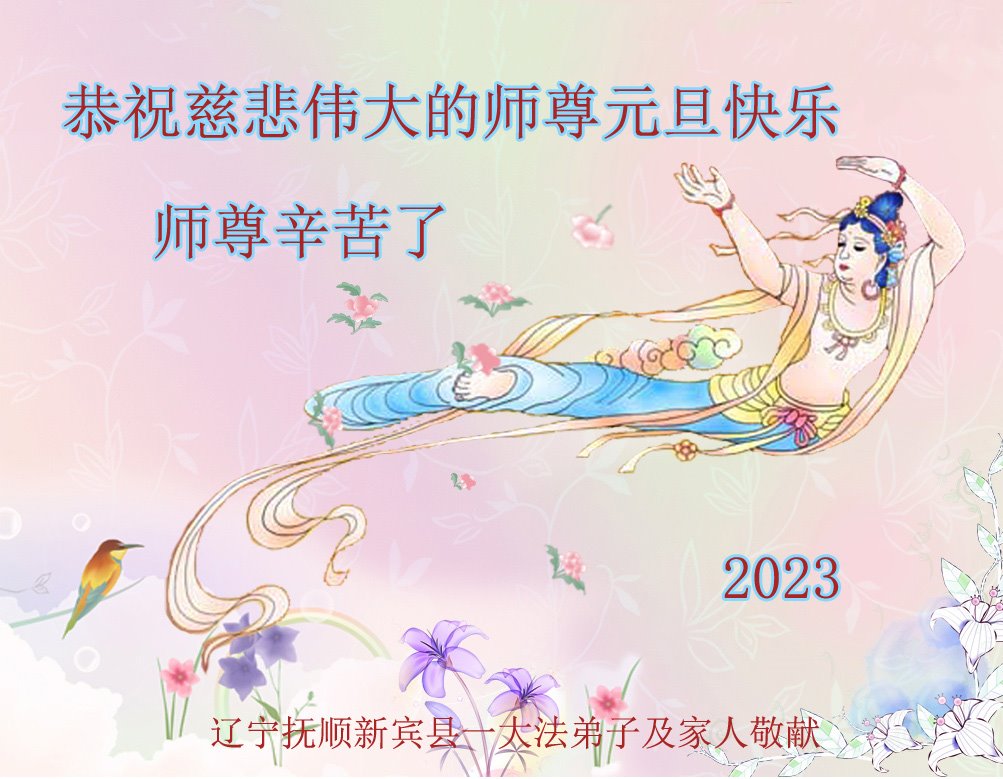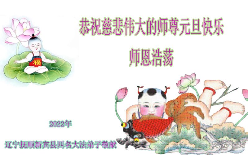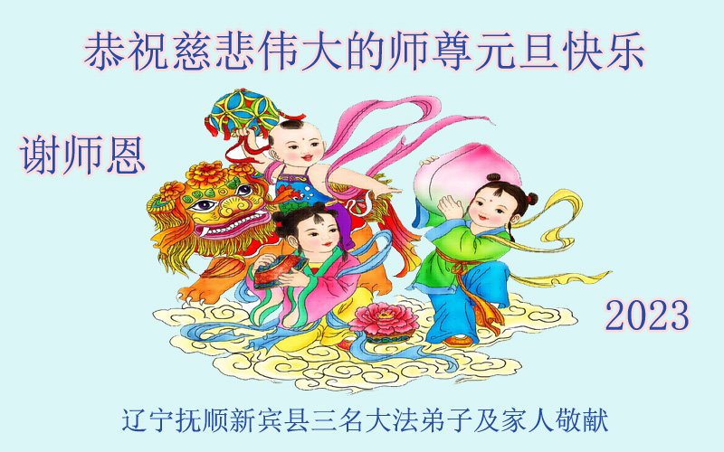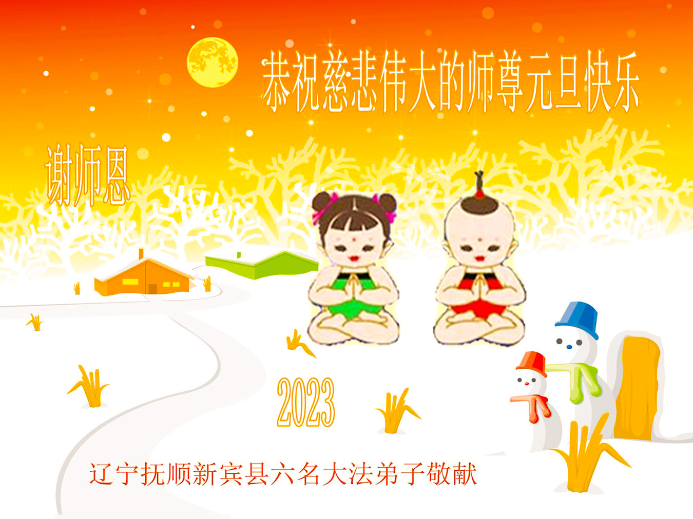 【明慧网二零二二年十二月三十日】 辽宁抚顺新宾县一大法弟子及家人恭祝师尊元旦快乐!