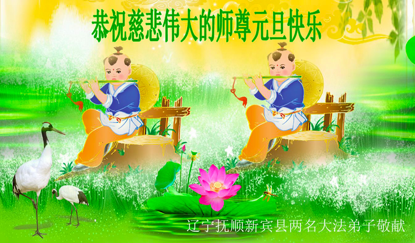 辽宁抚顺新宾县两名大法弟子恭祝师尊元旦快乐!