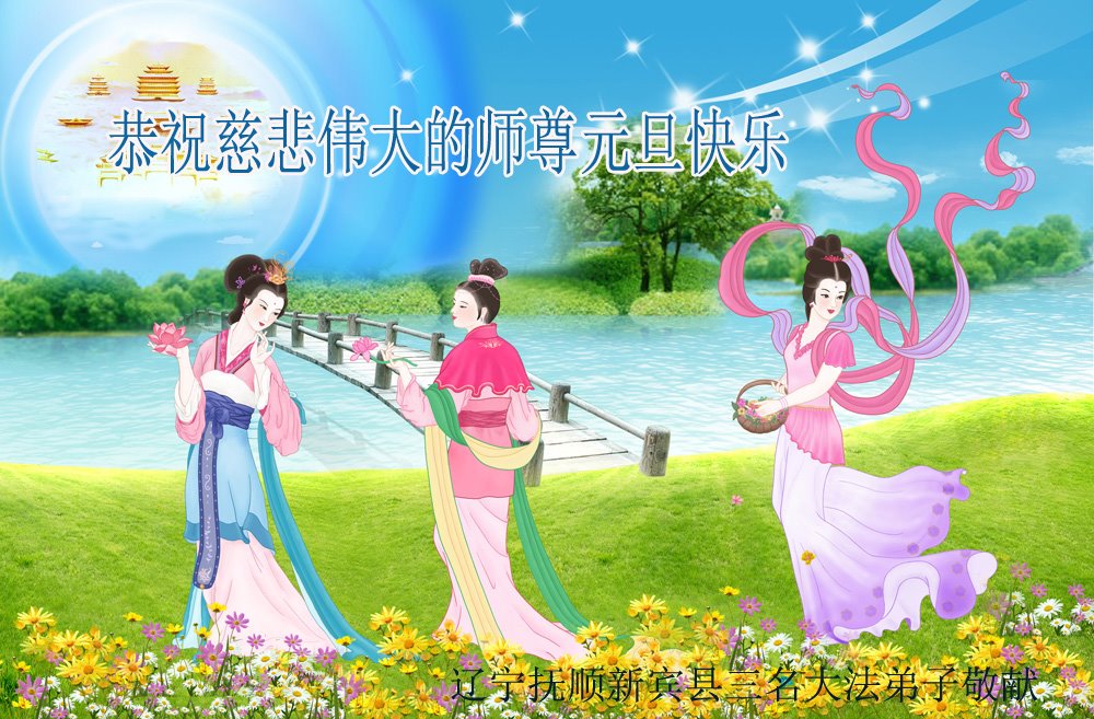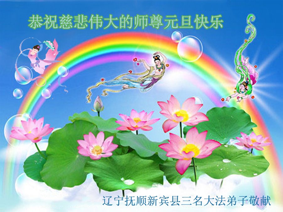 辽宁抚顺新宾县三名大法弟子恭祝师尊元旦快乐!