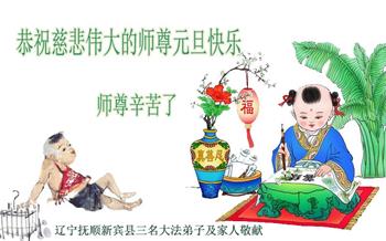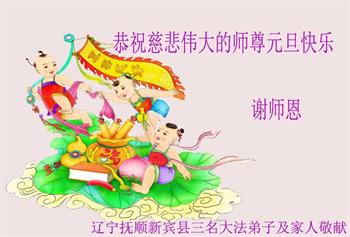 辽宁抚顺新宾县三名大法弟子及家人恭祝师尊元旦快乐!