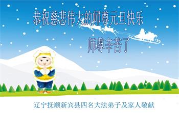 辽宁抚顺新宾县四名大法弟子及家人恭祝师尊元旦快乐!