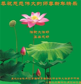 黑龙江省牡丹江市海林地区一夫妻同修大法弟子恭祝慈悲伟大的师尊新年快乐! 黑龙江省牡丹江市海林地区一学法小组大法弟子恭祝师尊新年快乐!