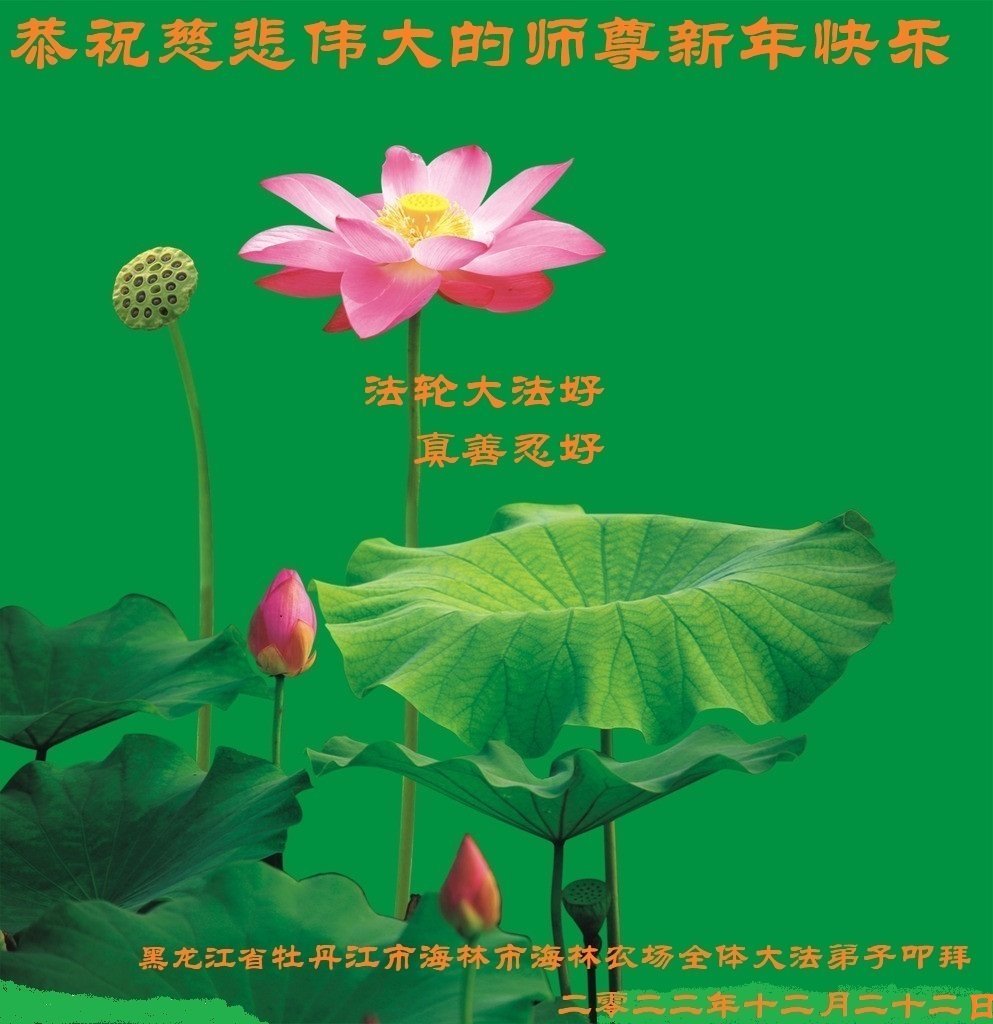 黑龙江省牡丹江市海林市海林农场全体大法弟子恭祝慈悲伟大的师尊新年快乐! 黑龙江省牡丹江市海林地区一夫妻大法弟子恭祝师尊新年快乐!