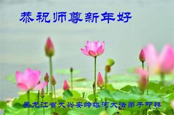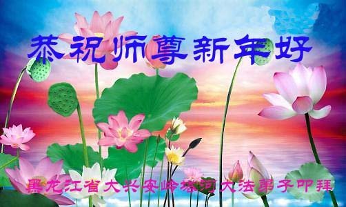 黑龙江省牡丹江市海林地区一学法小组大法弟子恭祝慈悲伟大的师尊新年快乐! 黑龙江省大兴安岭塔河县大法弟子恭祝师尊新年好!