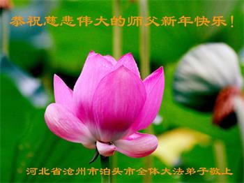 在新的一年里,弟子们一定多学法,学好法,修好自己,救度更多众生!惟愿师尊笑! 河北省沧州市泊头市全体大法弟子恭祝慈悲伟大的师父新年快乐!
