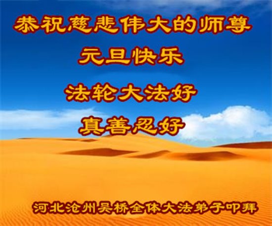 【明慧网二零二二年十二月三十日】 河北沧州吴桥全体大法弟子恭祝慈悲伟大的师尊元旦快乐!