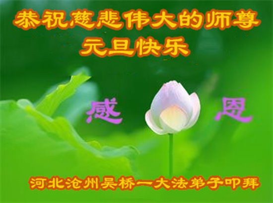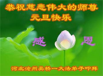 感恩师父的慈悲苦度!无论什么语言都无法表达我对师父的感恩,唯有做好三件事,精進实修,走好最后的路,以报师恩。 河北沧州吴桥一大法弟子恭祝慈悲伟大的师尊元旦快乐!