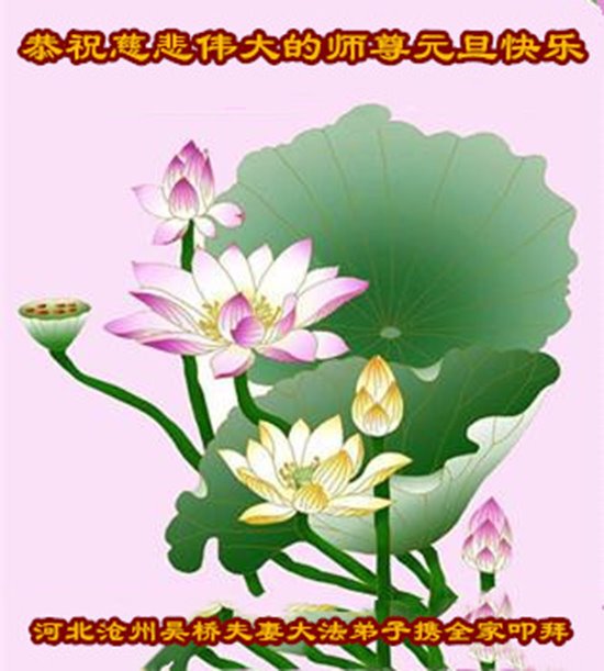河北沧州吴桥夫妻大法弟子携全家恭祝慈悲伟大的师尊元旦快乐!