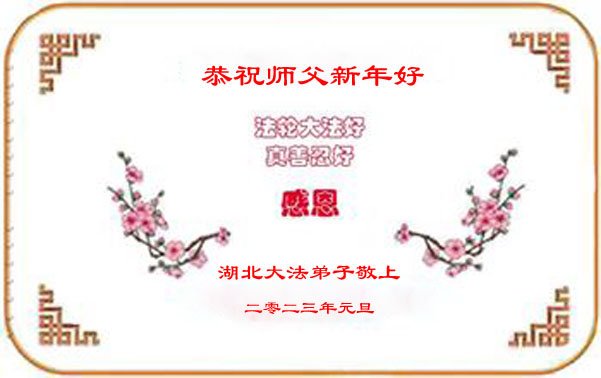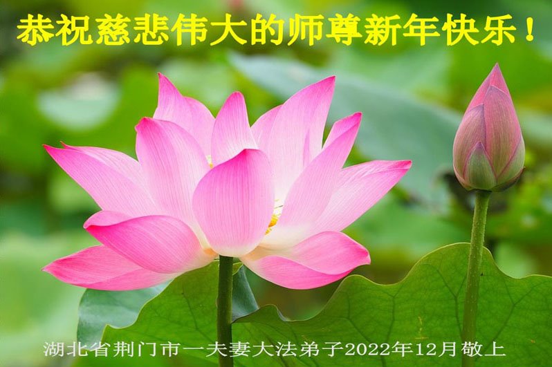 【明慧网二零二二年十二月三十日】 湖北省荆门市一夫妻大法弟子恭祝慈悲伟大的师尊新年快乐!