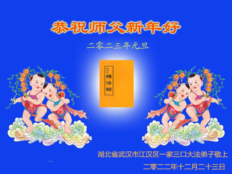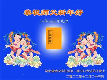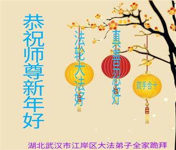 湖北省武汉市江汉区一家三位大法弟子恭祝师父新年好!